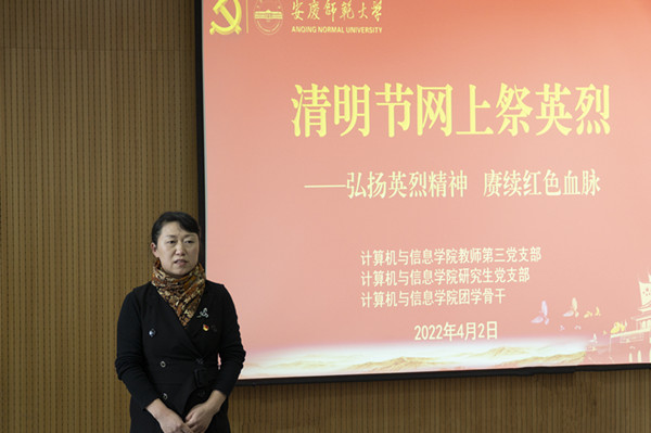 为引导师生崇尚英烈,弘扬中华民族精神,4月2日下午,学院于L302教室开展网上祭英烈活动,院党委书记陈银凤、副书记江晋剑、教师第三党支部、研究生党支部全体党员和入党积极分子、团学干部等近60人参与了此次活动。